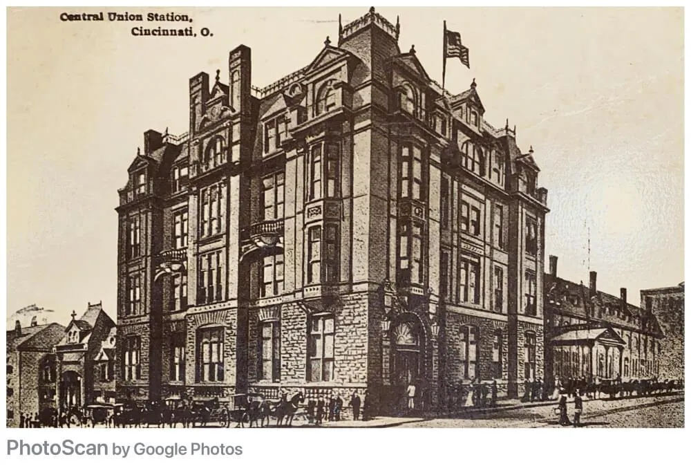 Union R. R. Depot, Cincinnati, O. Says "We arrived O.K. - baggage and luggage. JML